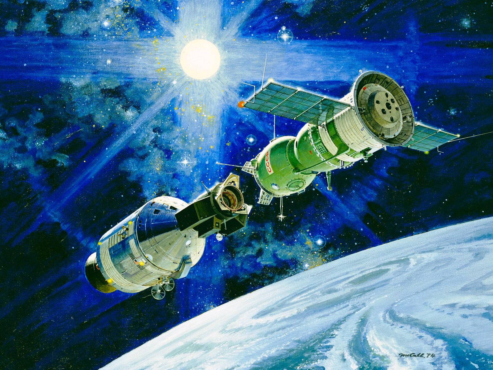 “The Apollo-Soyuz Test Project would send NASA astronauts Tom Stafford, Deke Slayton and Vance Brand in an Apollo Command and Service Module to meet Russian cosmonauts Aleksey Leonov and Valeriy Kubasov in a Soyuz capsule,” NASA has recounted. “A jointly designed, US-built docking module fulfilled the main technical goal of the mission, demonstrating that two dissimilar craft could dock in orbit. But the human side of the mission went far beyond that.”